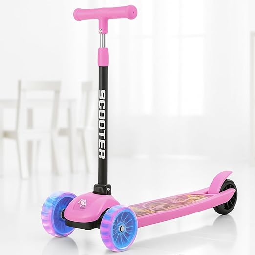 Storio Kick Scooter with Adjustable Height | Foldable | Skate Ride for Kids with PVC Wheels | Age 2–12 Years | Max User Weight 60 kg – Pink