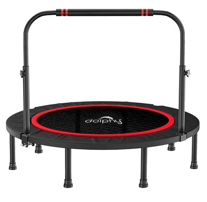 Dolphy 48″ Foldable Trampoline Mini Exercise Rebounder with Adjustable Foam Handle Great for Body Fitness Training Indoor/Garden/Workout Max Load 100kg.